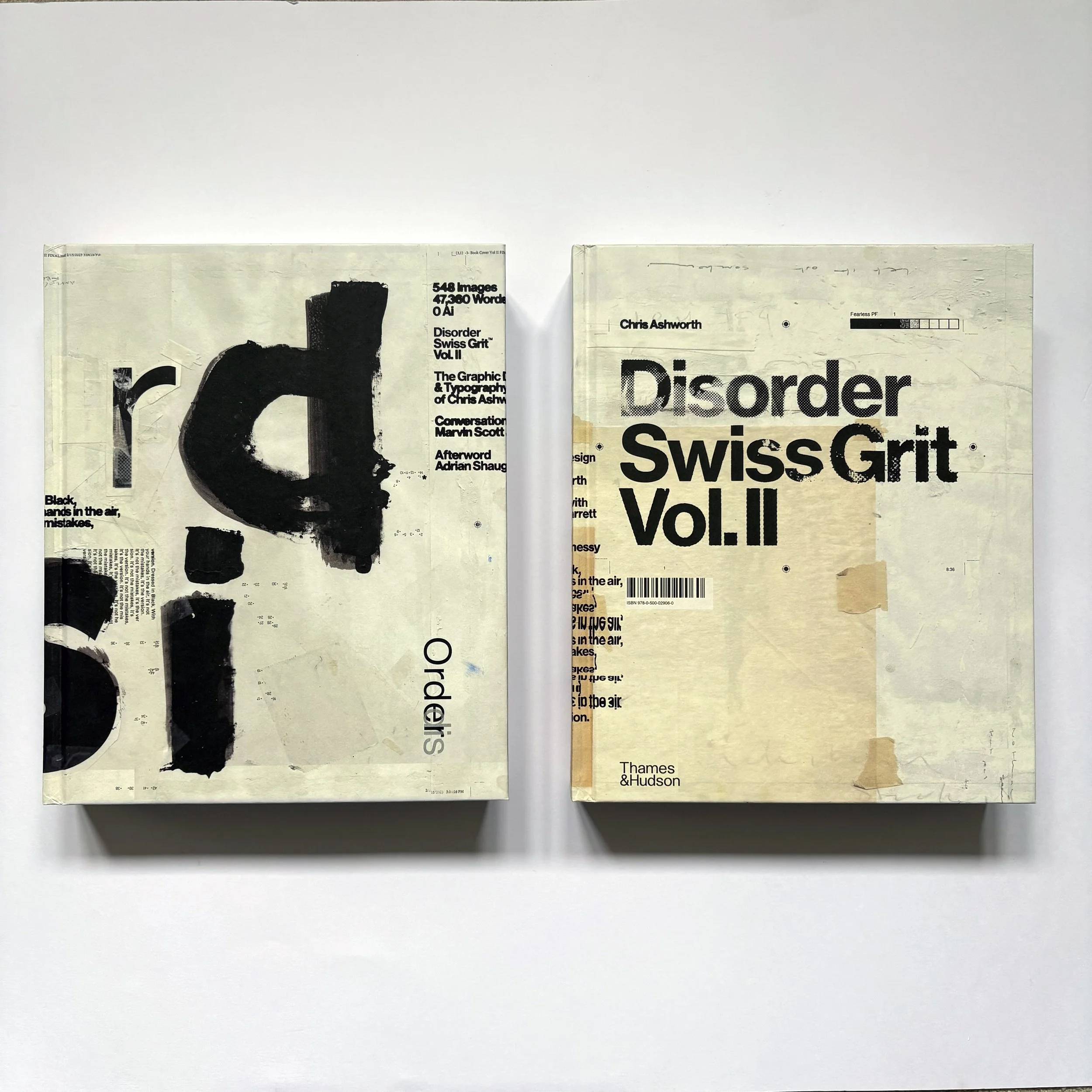 Disorder: Swiss Grit Volume II, the first publication to survey his work, celebrates this approach to graphic design over nearly 500 pages. Beginning with his influential work for Ray Gun and covering a wide range of printed and published work from 1997 to the present day, the book is concerned with the human craft of creativity and analogue design, the details, imperfections and serendipitous moments. An AI-free-zone. (Ltd Ed Backer Book Cover shown below).